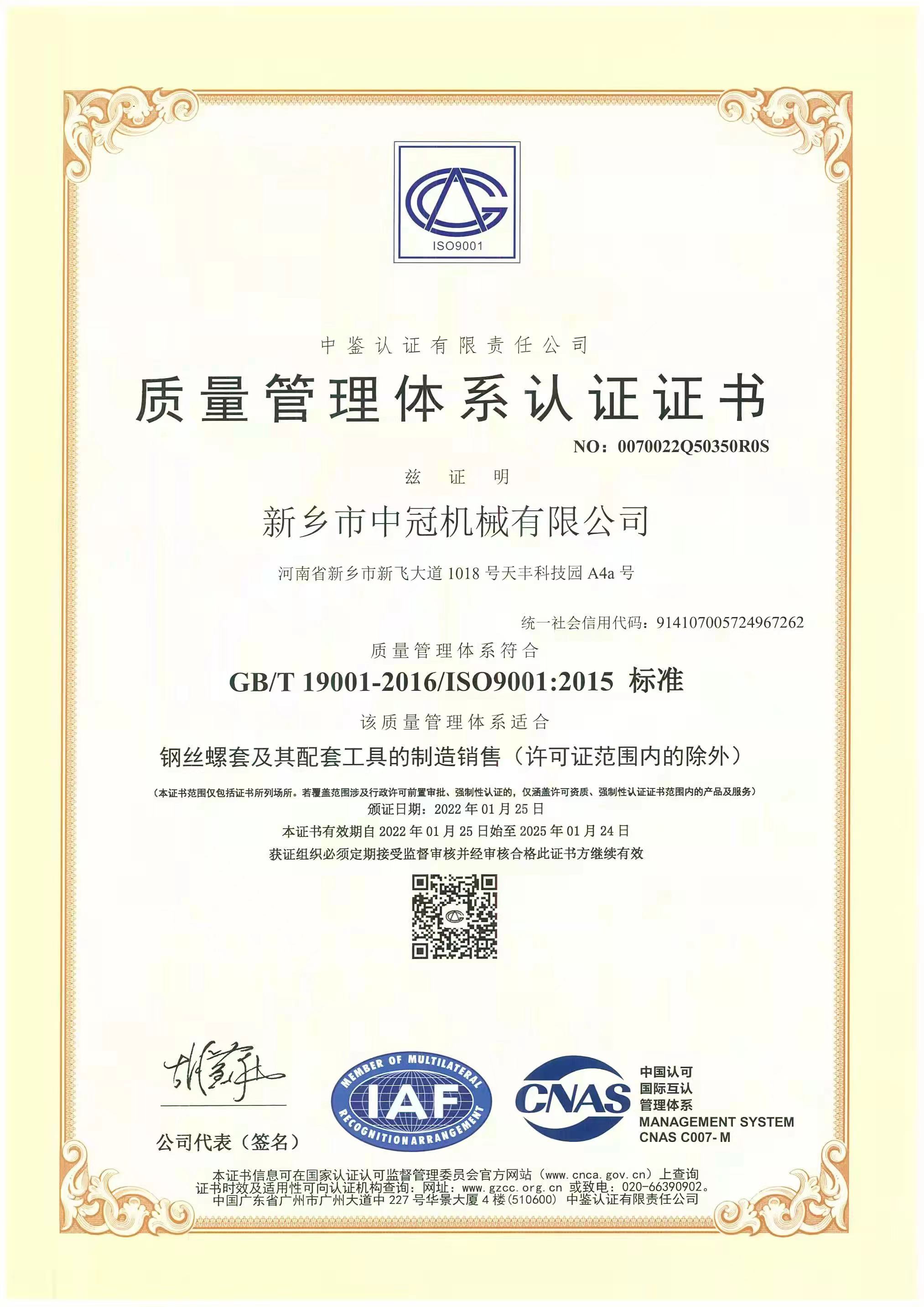 質(zhì)量證書